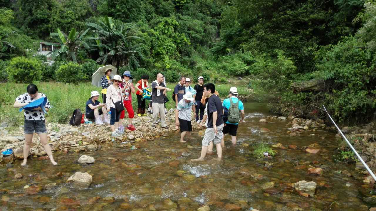早上8点,六十名会员在东建世纪广场门口集合完毕,乘坐两辆大巴车前往英德。上午11点到达徒步目的地—英德,开始了我们的徒步之旅。行走在山间小路上,两边茂林修竹、溪水潺潺,群山倒映在清澈的河水里,泥土的气息夹杂着油菜花的芬芳,扑面而来,会员朋友们都被这毫无修饰的田园风光给迷住了。