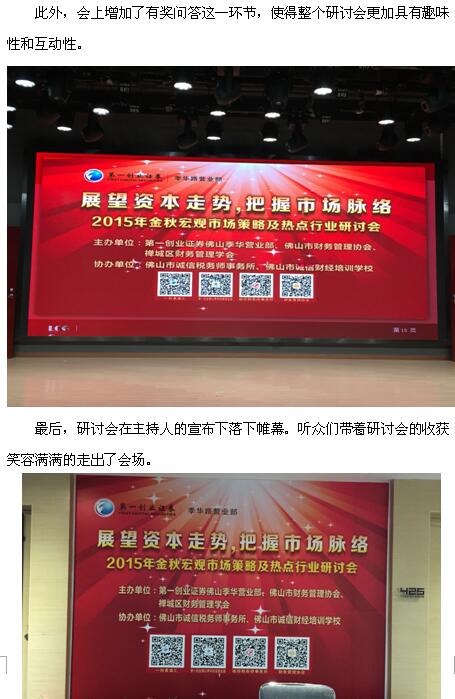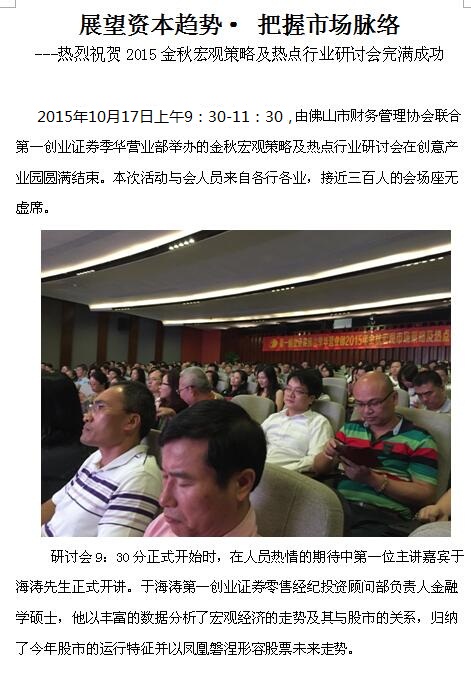 展望资本趋势,把握市场脉络---热烈祝贺2015金秋宏观策略及热点行业研讨会完满成功